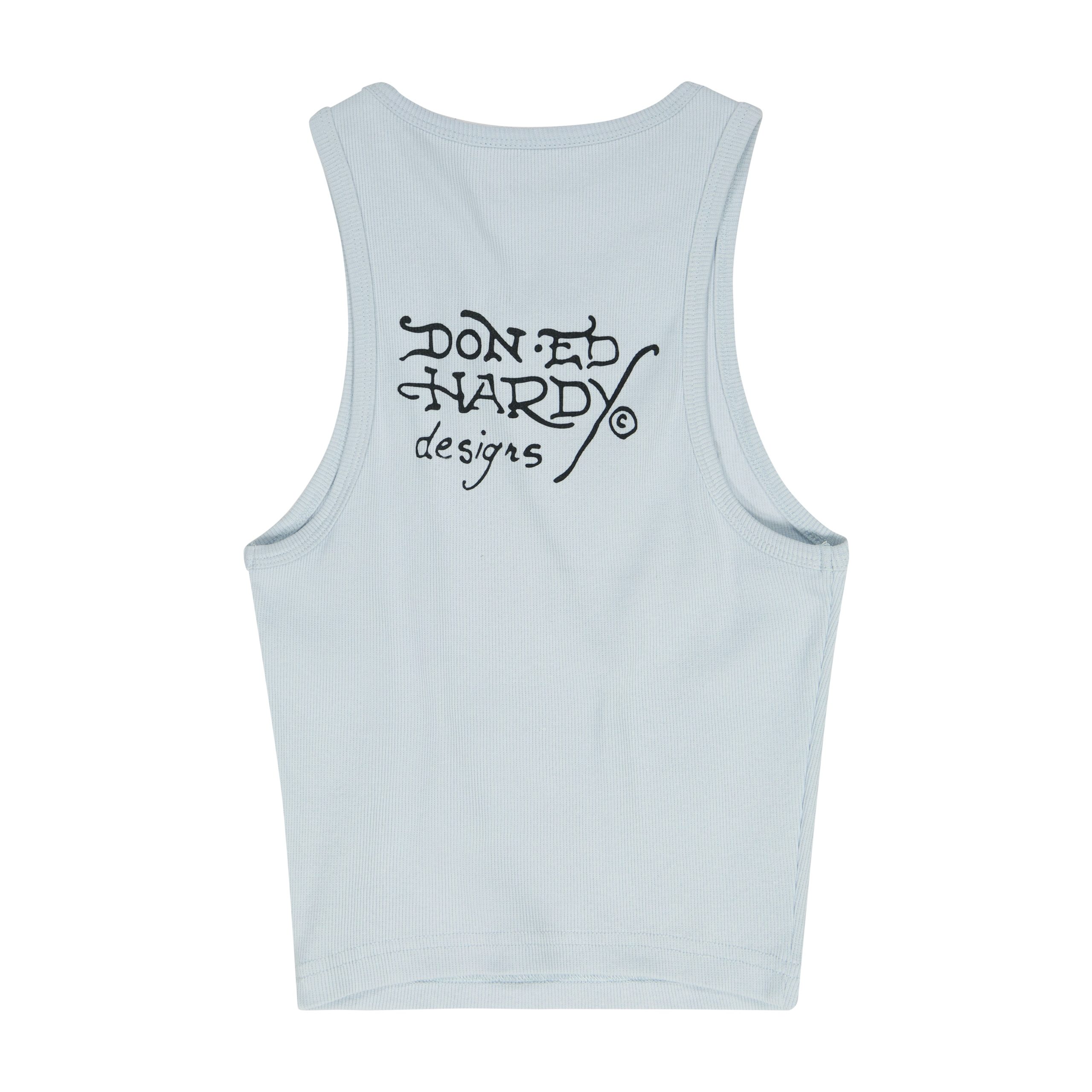Slim fit cropped tank top with a vintage feel. Features a signature Ed Hardy swallow graphic and multiple archival logos.